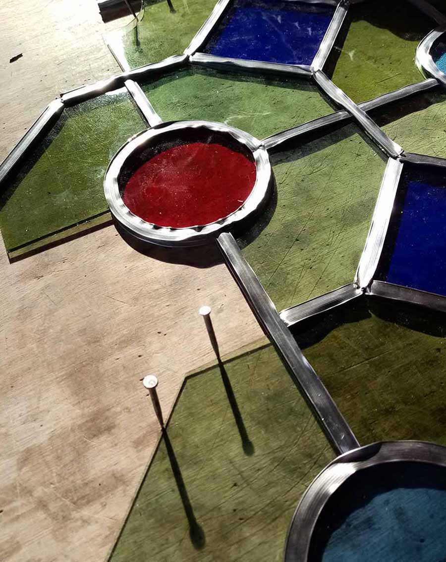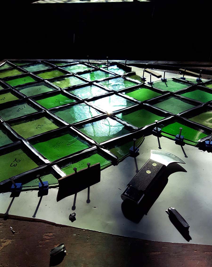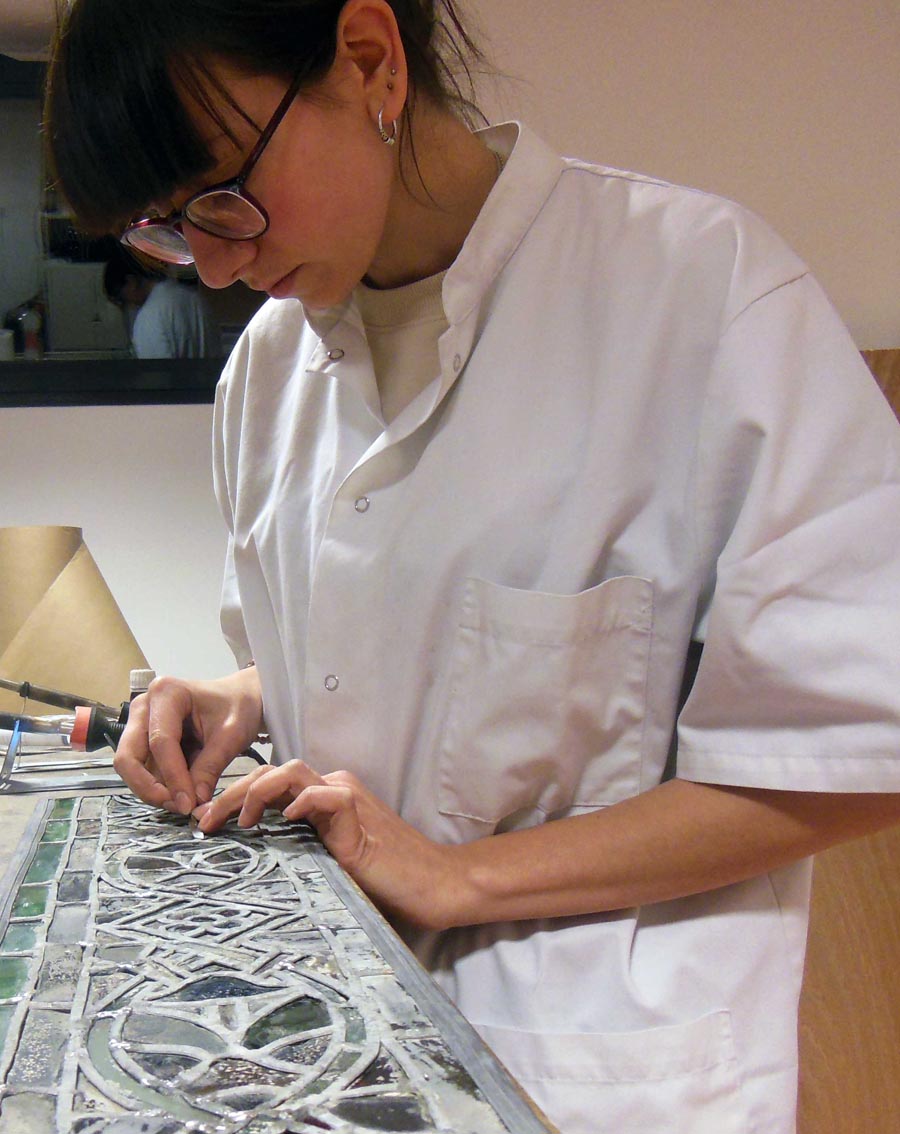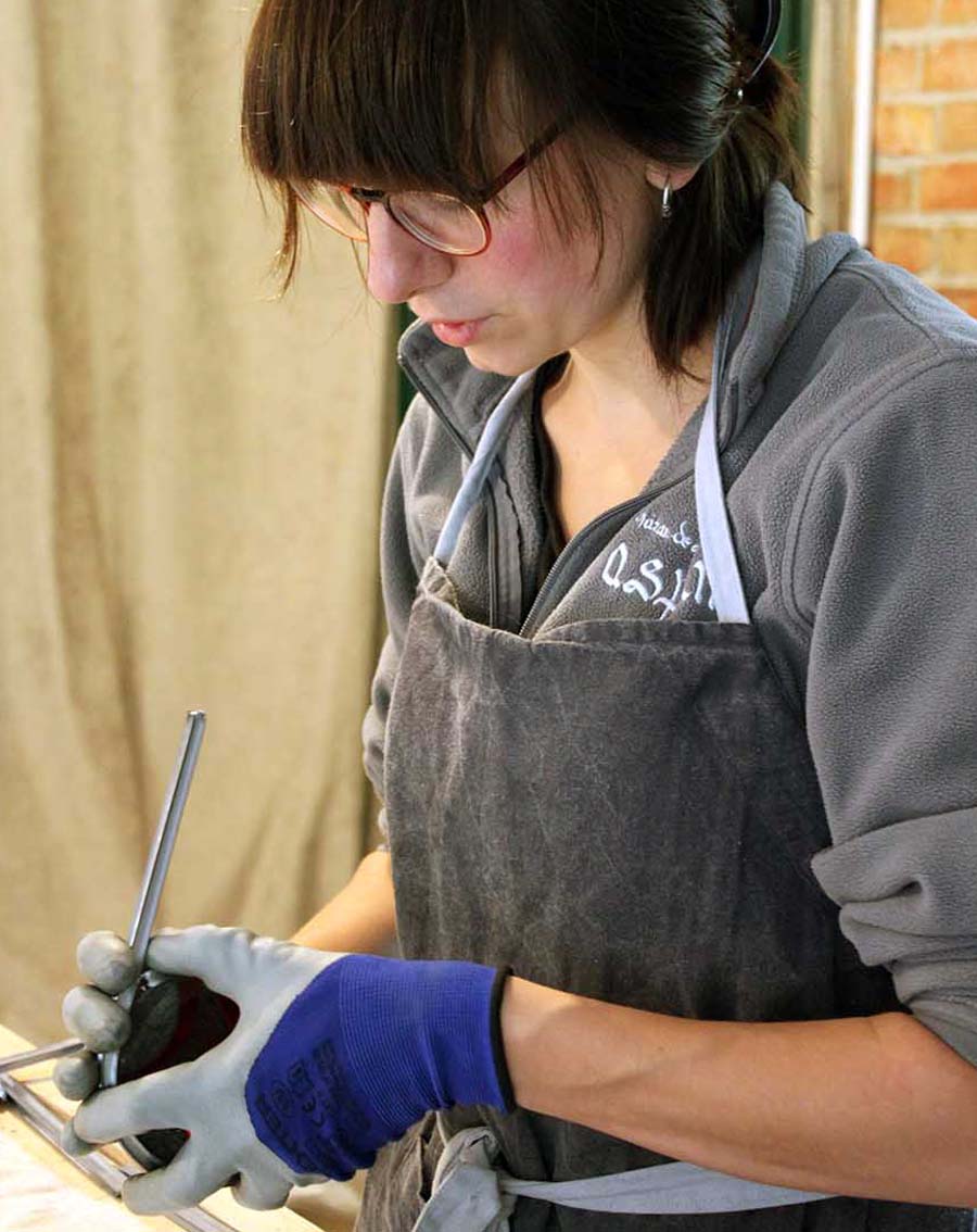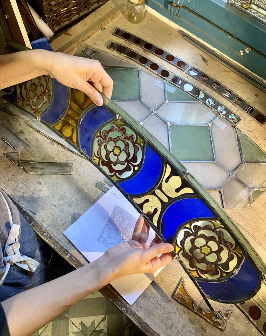 Connaissance approfondie : expertise des matériaux constitutifs : verres, plomb, grisaille, émaux, jaune d’argent, mastic et armatures métalliques anciennes.